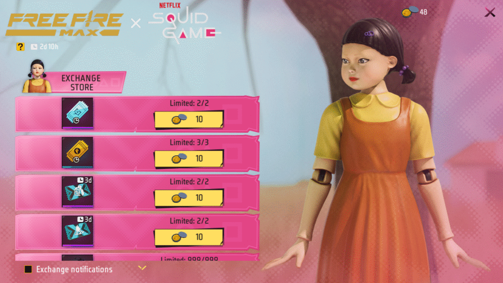 Squid game के अंदर आपको Doll का bundle मिल रहा है इसको पाने के लिए आपको token की जरूरत होगा। Token आपको daily mission complete करने पर मिलेगा।