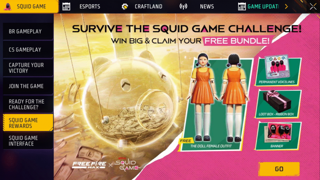 Garena Free fire ने इस बार squid game के साथ collaboration किया है। Squid game में season 3 है और हर 1 season में आपको 6-7 episode देखने को मिलता है और 1 ही lucky winner बनता है जिसके account में अरबो रुपये जमा होता है। जहां पर इन्होंने ने बहुत सारी चीजों में बदलाव किया है इस blog में मैं हर 1 चीज के बारे मे बताऊंगा तो आगे पढ़े –